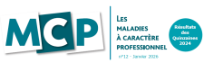 Les maladies à caractère professionnel (MCP) regroupent l’ensemble des maladies que tout médecin et plus particulièrement les médecins du travail, jugent, de part leur expertise, en lien avec l’activité professionnelle et qui ne sont pas indemnisées par un régime de Sécurité sociale au moment de la visite. De fait, elles échappent aux statistiques annuelles de la Sécurité sociale.