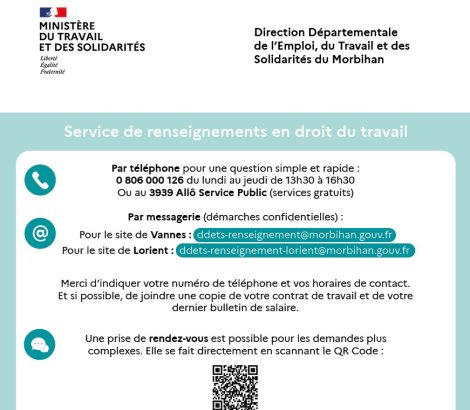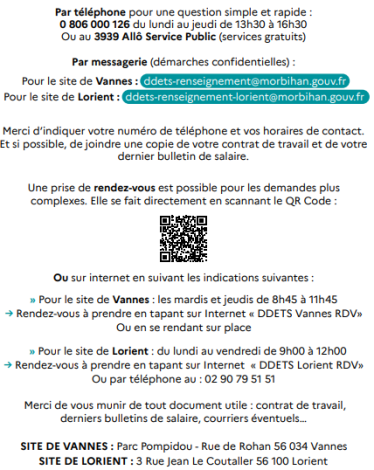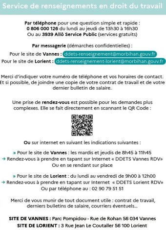 → Messagerie du secteur de Lorient : ddets-renseignement-lorient@morbihan.gouv.fr